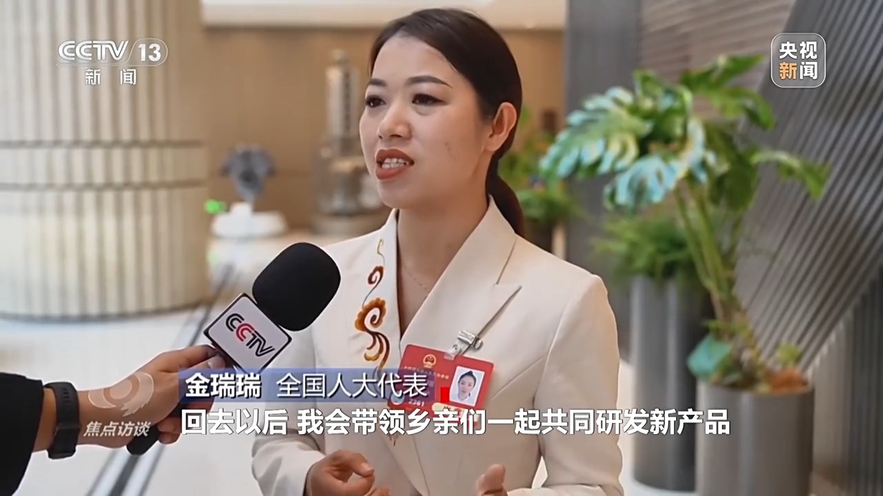 全國人大代表 金瑞瑞:方向和路徑都非常清晰,回去以后,我會帶領鄉親們一起共同研發新產品,把非遺手工的技藝傳承好和發揚好,帶著鄉親們共同賺錢,把全國兩會擘畫的美好愿景轉化為實實在在的成績和收獲。