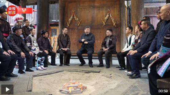 17日下午,習近平總書記來到貴州黎平縣肇興侗寨考察。在村寨的信團鼓樓,習近平同村干部和村民代表圍坐在火塘邊共話鄉村全面振興。大家你一言、我一語,爭相向總書記講述近年來的村寨變化和幸福生活。習近平高興地說,從你們的講述、你們的神情可以看出,村寨這些年欣欣向榮。現在旅游是一個很大的產業,鄉村旅游如火如荼,民族地區要保留自己的特色文化,在文旅融合中更加彰顯它的光彩。祝你們的日子越過越紅火!
