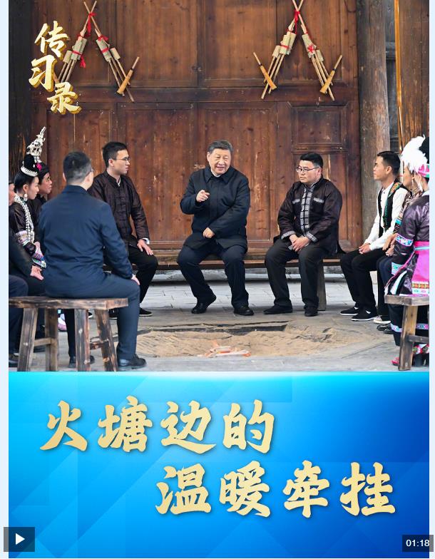 3月17日,習(xí)近平總書記來到貴州省黔東南州黎平縣肇興侗寨考察調(diào)研。信團(tuán)鼓樓內(nèi),一方火塘邊,總書記同村干部和村民代表圍坐一起,共話鄉(xiāng)村全面振興。