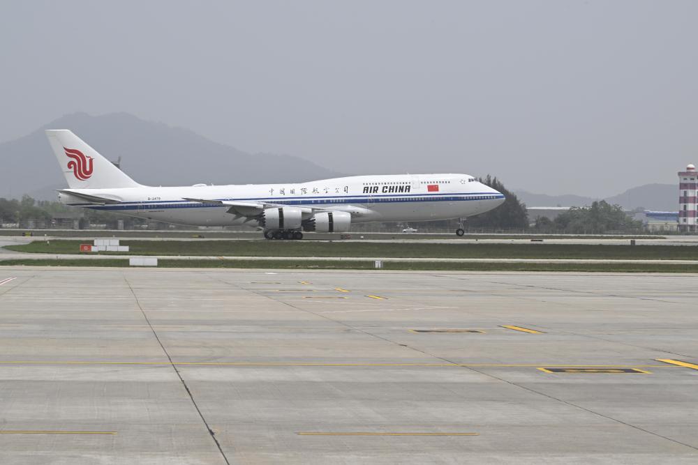 當地時間14日11時29分許,中共中央總書記、國家主席習近平乘坐的專機降落越南河內內排國際機場。