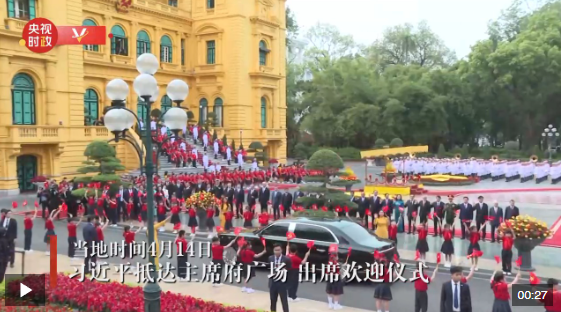 4月14日,中共中央總書記、國家主席習(xí)近平抵達河內(nèi)對越南進行國事訪問。當日下午,越共中央總書記蘇林為習(xí)近平舉行隆重歡迎儀式。