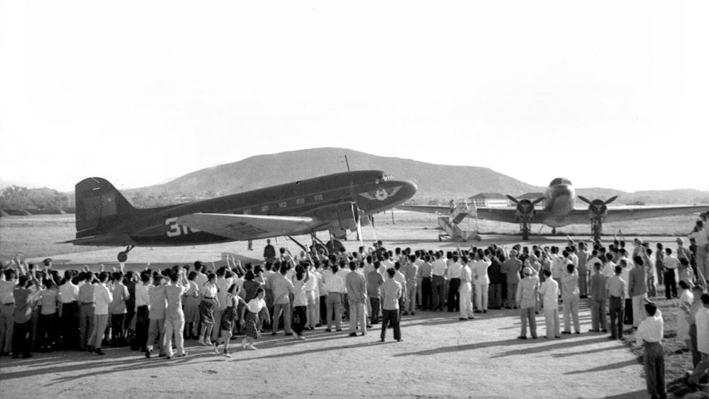 1956年4月24日,從中國廣州經南寧至越南河內的民用航線正式通航。這是首航飛機準備起飛。