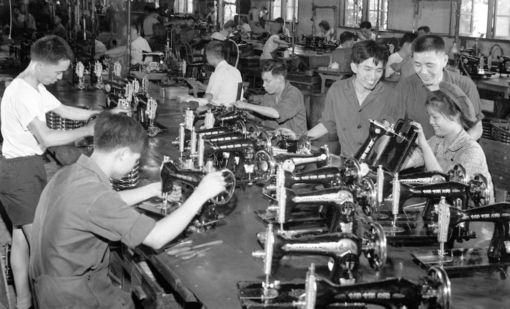 1970年,越南實習生在上海東方紅縫紉機廠學習裝配技術。