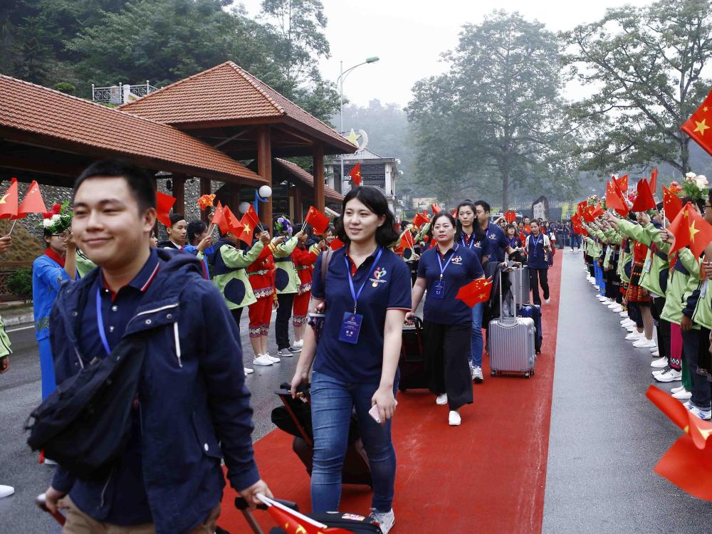 2016年11月7日,在越南北部諒山省,人們歡迎中國青年代表參加第三屆中越青年大聯歡。