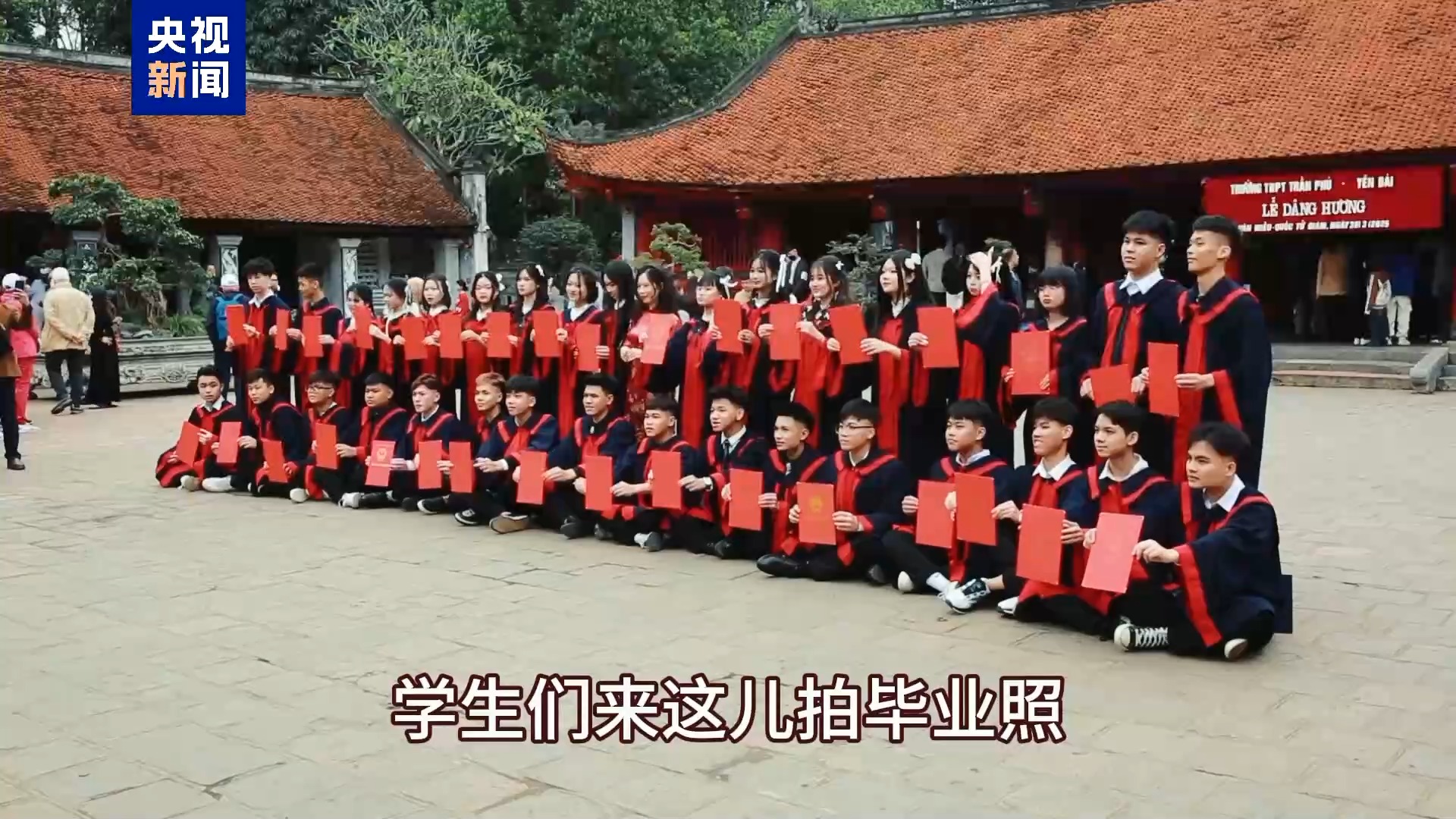 越南女學生:因為這里是一個神圣的地方,學生們來這兒拍畢業照,大家來文廟祭拜,希望能取得更好的學習成績。