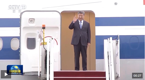 蔡奇、王毅、王小洪等陪同人員同機抵達。