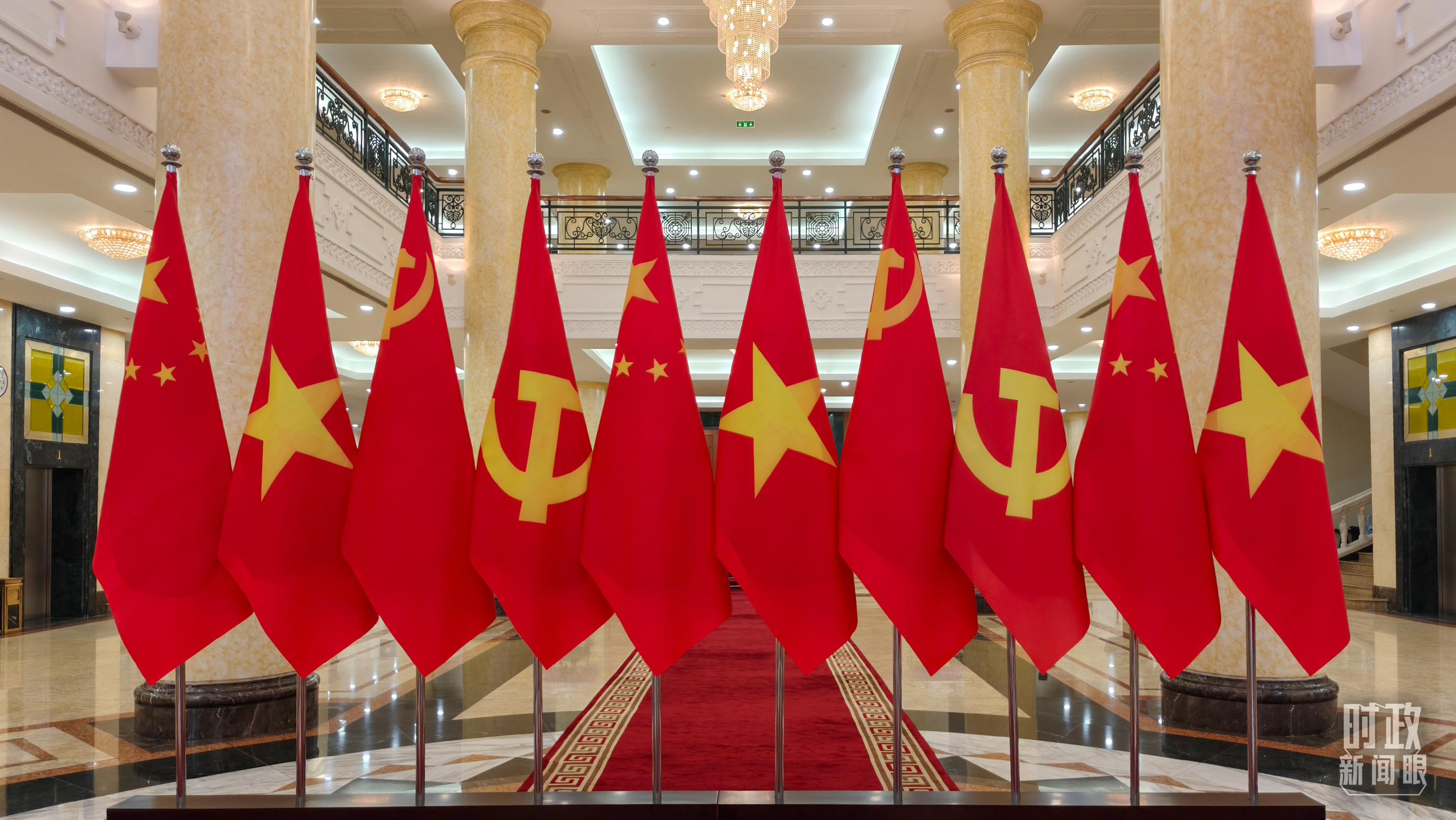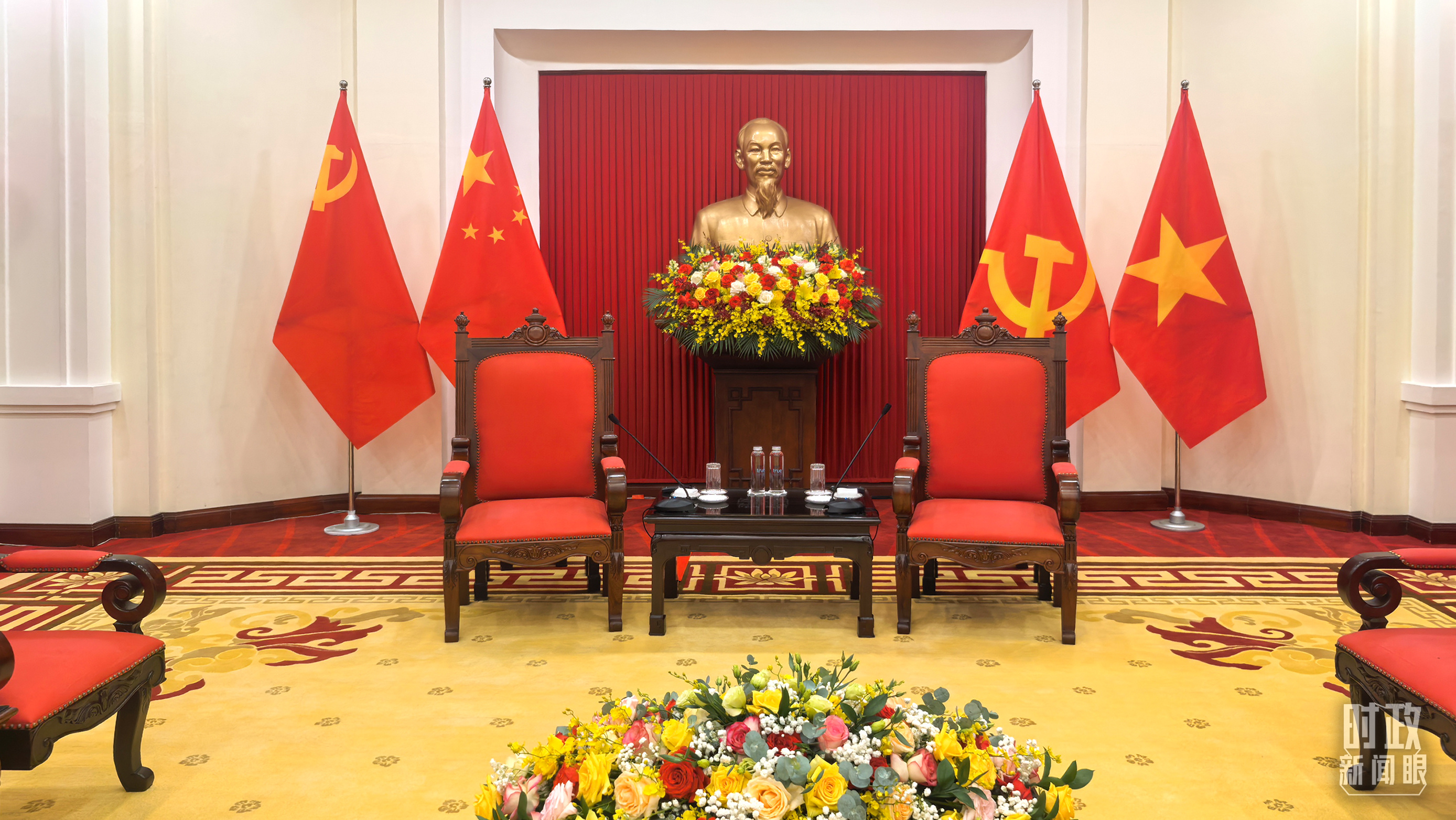 越共中央駐地擺放的中越兩黨兩國旗幟。(總臺央視記者楊立峰拍攝)