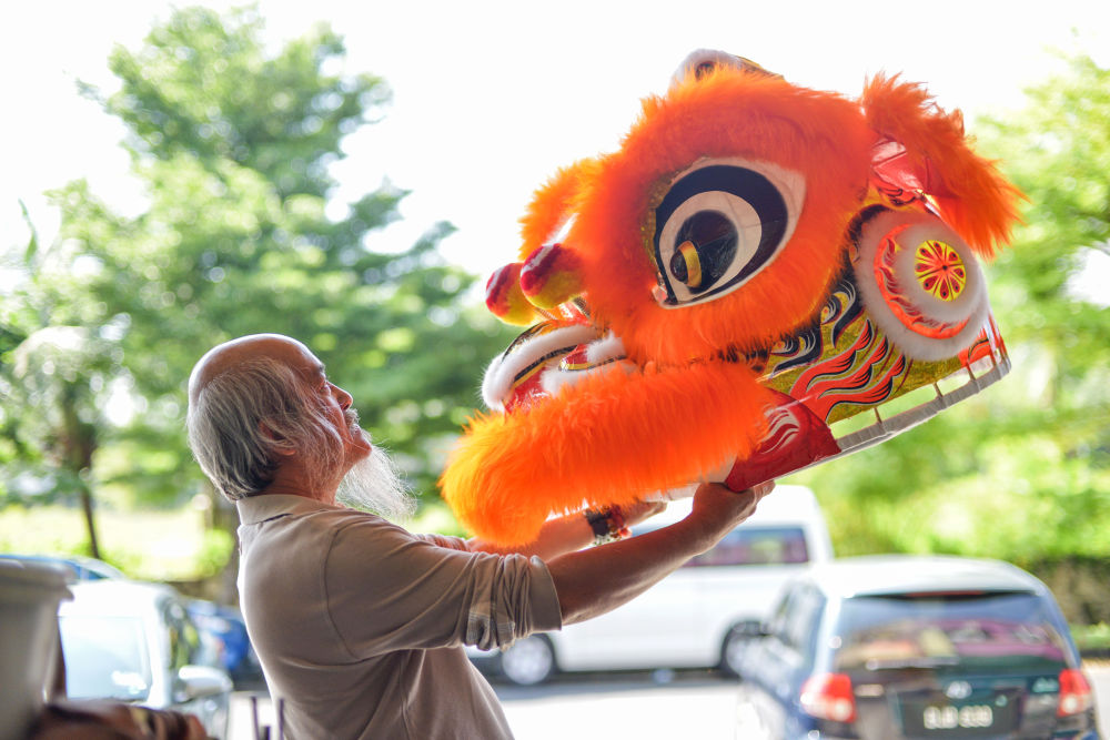2018年2月1日,在馬來(lái)西亞雪蘭莪州沙阿蘭的梳邦濱吉蘭,蕭斐弘端起一個(gè)“獅頭”。蕭斐弘祖籍中國(guó)廣東潮州,因喜愛(ài)中華文化,從小練習(xí)舞獅,并成為一名制作獅頭的工匠。他帶領(lǐng)的獅隊(duì)屢屢在國(guó)際舞獅比賽中獲獎(jiǎng),成功將馬來(lái)西亞的舞獅隊(duì)伍推向國(guó)際舞臺(tái)。