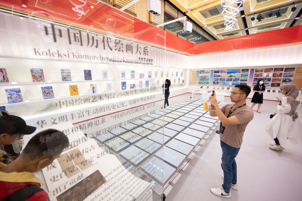 2023年5月26日,觀眾在馬來(lái)西亞吉隆坡舉行的第40屆吉隆坡國(guó)際書(shū)展上觀看“中國(guó)歷代繪畫(huà)大系”展覽。由浙江大學(xué)、浙江省文物局編纂,浙江大學(xué)出版社出版的“中國(guó)歷代繪畫(huà)大系”,收錄了海內(nèi)外263家文博機(jī)構(gòu)的紙、絹(含帛、綾)、麻等材質(zhì)的中國(guó)古代繪畫(huà)藏品12000余件(套),涵蓋了絕大部分傳世的“國(guó)寶”級(jí)繪畫(huà)珍品。