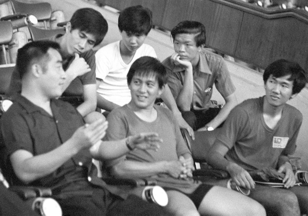 1973年,中國(guó)乒乓球代表團(tuán)應(yīng)馬來(lái)西亞乒乓球總會(huì)的邀請(qǐng),對(duì)馬來(lái)西亞進(jìn)行了友好訪問(wèn),受到馬來(lái)西亞人民的熱烈歡迎。這是1973年6月11日,中國(guó)乒乓球代表團(tuán)團(tuán)長(zhǎng)莊則棟(左一)同馬來(lái)西亞乒乓球運(yùn)動(dòng)員一起交流球技。