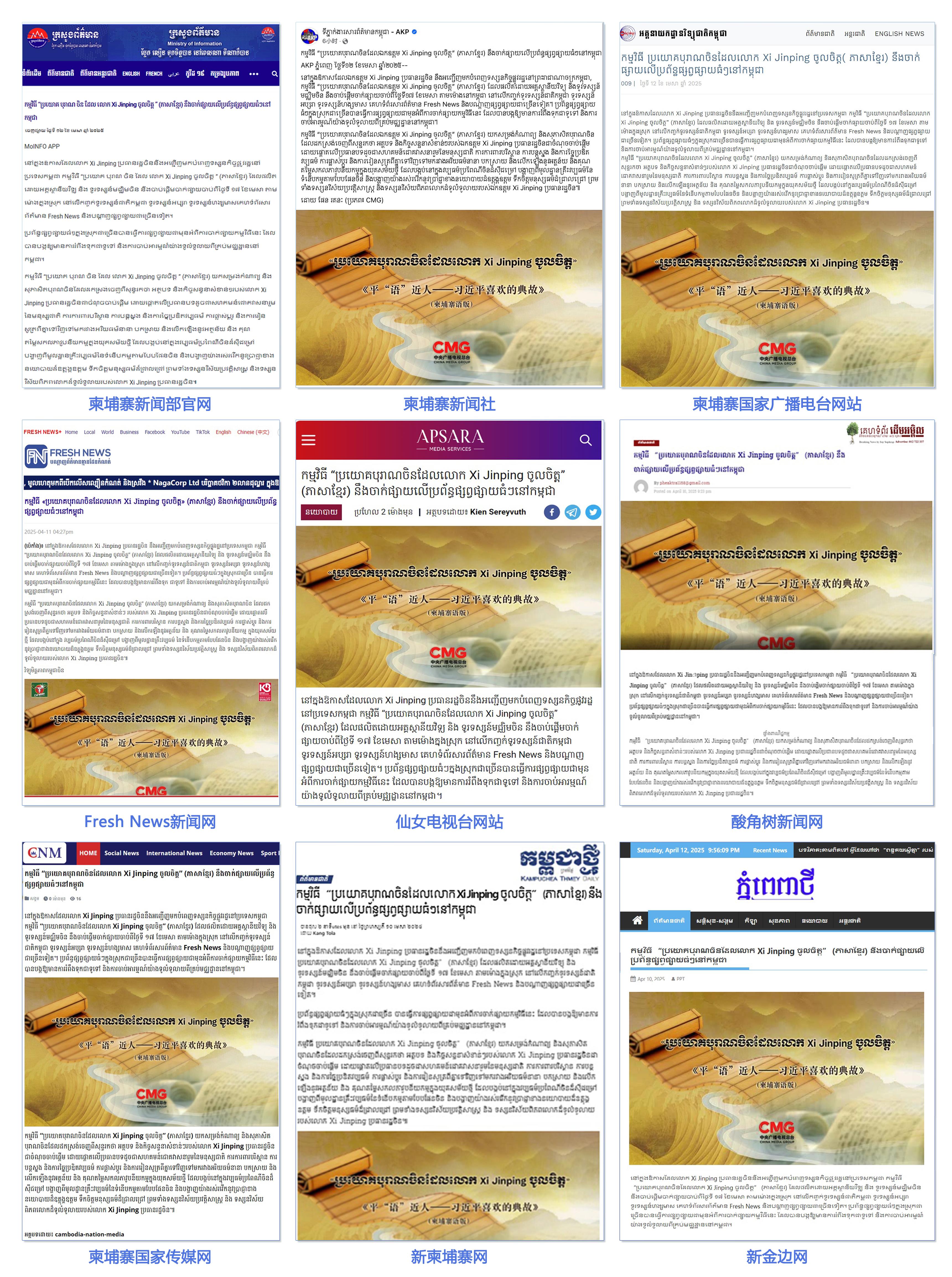 柬埔寨新聞部官網、柬埔寨新聞社、柬埔寨國家廣播電臺網站、Fresh News新聞網、仙女電視臺網站、柬中記協網站、酸角樹新聞網、柬埔寨國家傳媒網、新柬埔寨網、新金邊網、《金邊日報》網等柬主流媒體發布相關報道。