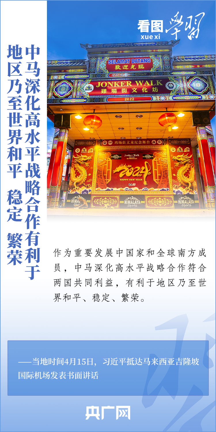 “中國和馬來西亞是好鄰居、好朋友、好伙伴,常來常往、親如一家。”4月15日至17日,國家主席習近平應邀對馬來西亞進行國事訪問。訪問期間,習主席高度評價中馬關系,就共同打造高水平戰略性中馬命運共同體,譜寫睦鄰友好、團結合作新篇章,開啟中馬關系新的“黃金50年”擘畫藍圖和愿景。一起來學習!