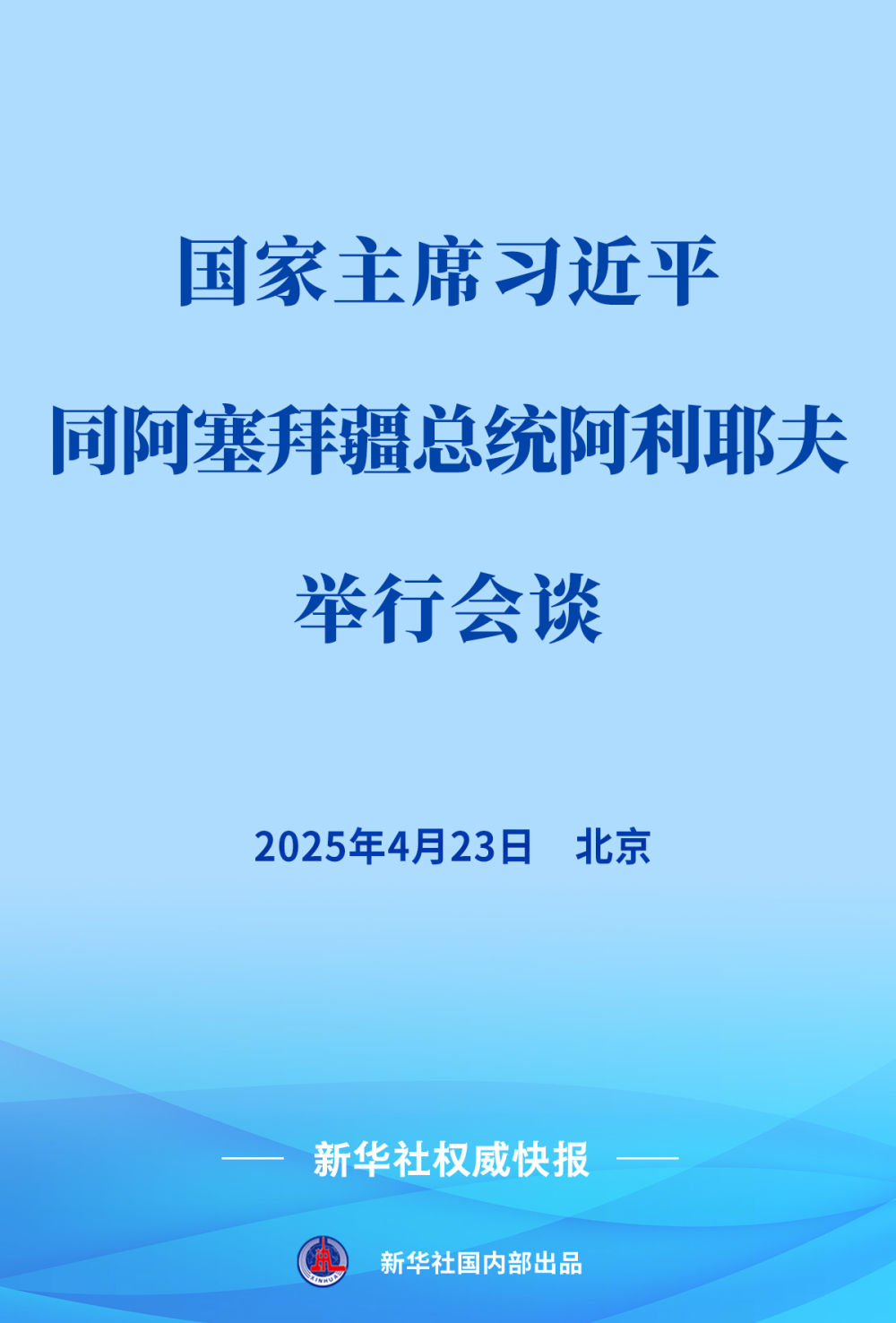 4月23日,國(guó)家主席習(xí)近平在北京同來(lái)華進(jìn)行國(guó)事訪問的阿塞拜疆總統(tǒng)阿利耶夫舉行會(huì)談。