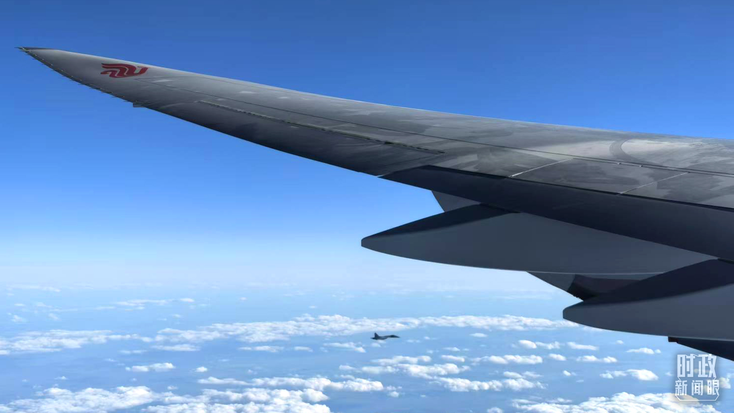 俄羅斯戰機升空護航。(總臺央視記者李錚拍攝)
