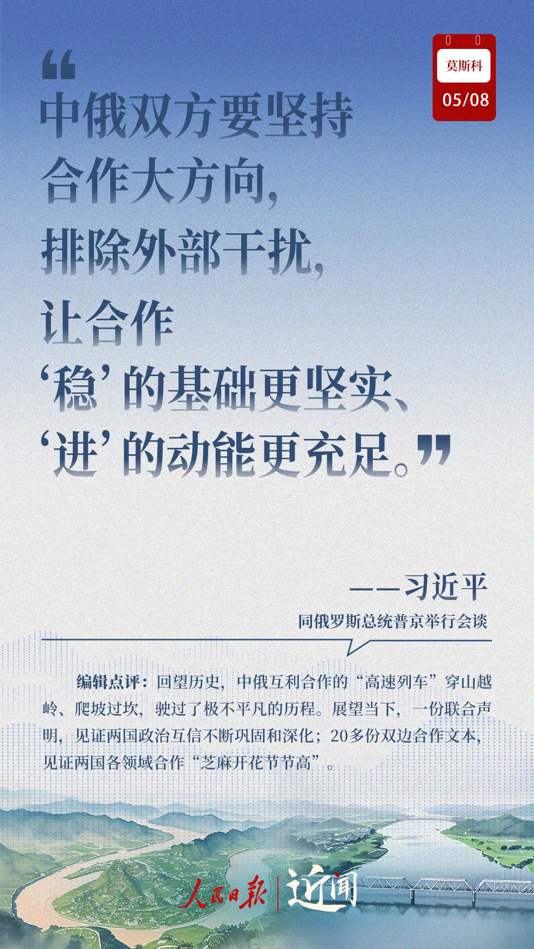 當地時間5月8日,習近平主席出席普京總統舉行的歡迎儀式、小范圍會談、大范圍會談、簽字和合作文本交換儀式、共見記者、茶敘,兩國元首不同形式的長時間交流,引領中俄關系登高望遠。