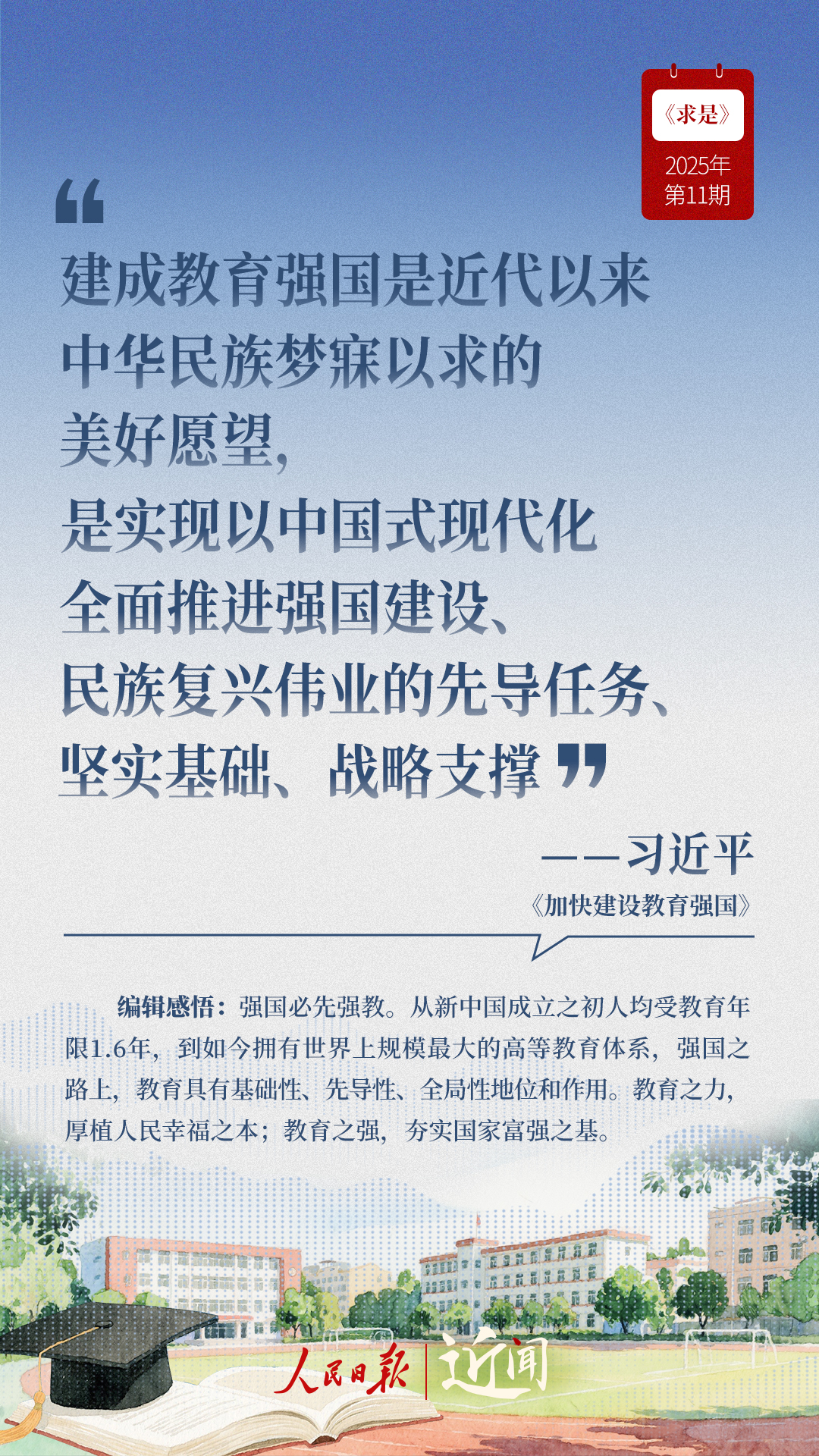 教育是國(guó)之大計(jì)、黨之大計(jì)。日前,《求是》雜志發(fā)表習(xí)近平總書記重要文章《加快建設(shè)教育強(qiáng)國(guó)》。“全面把握教育的政治屬性、人民屬性、戰(zhàn)略屬性”“讓教育改革發(fā)展成果更多更公平惠及全體人民”“讓教師享有崇高社會(huì)聲望、成為最受社會(huì)尊重的職業(yè)之一”……通過這些話,一起感悟習(xí)近平總書記對(duì)教育強(qiáng)國(guó)建設(shè)的謀劃與部署。