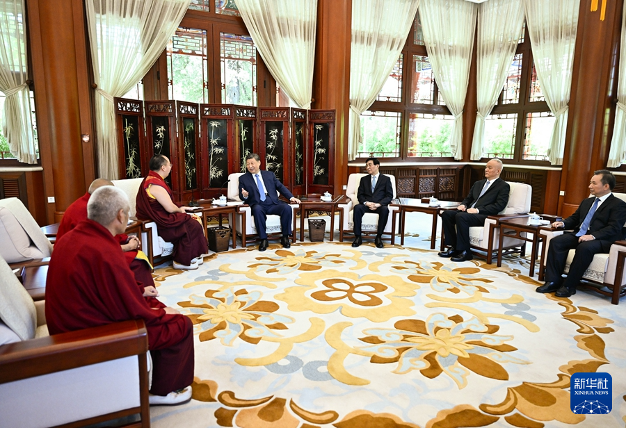 6月6日,中共中央總書記、國家主席、中央軍委主席習近平在北京中南海接受班禪額爾德尼·確吉杰布拜見。新華社記者 燕雁 攝