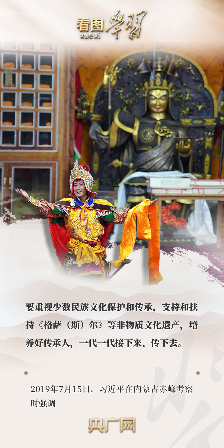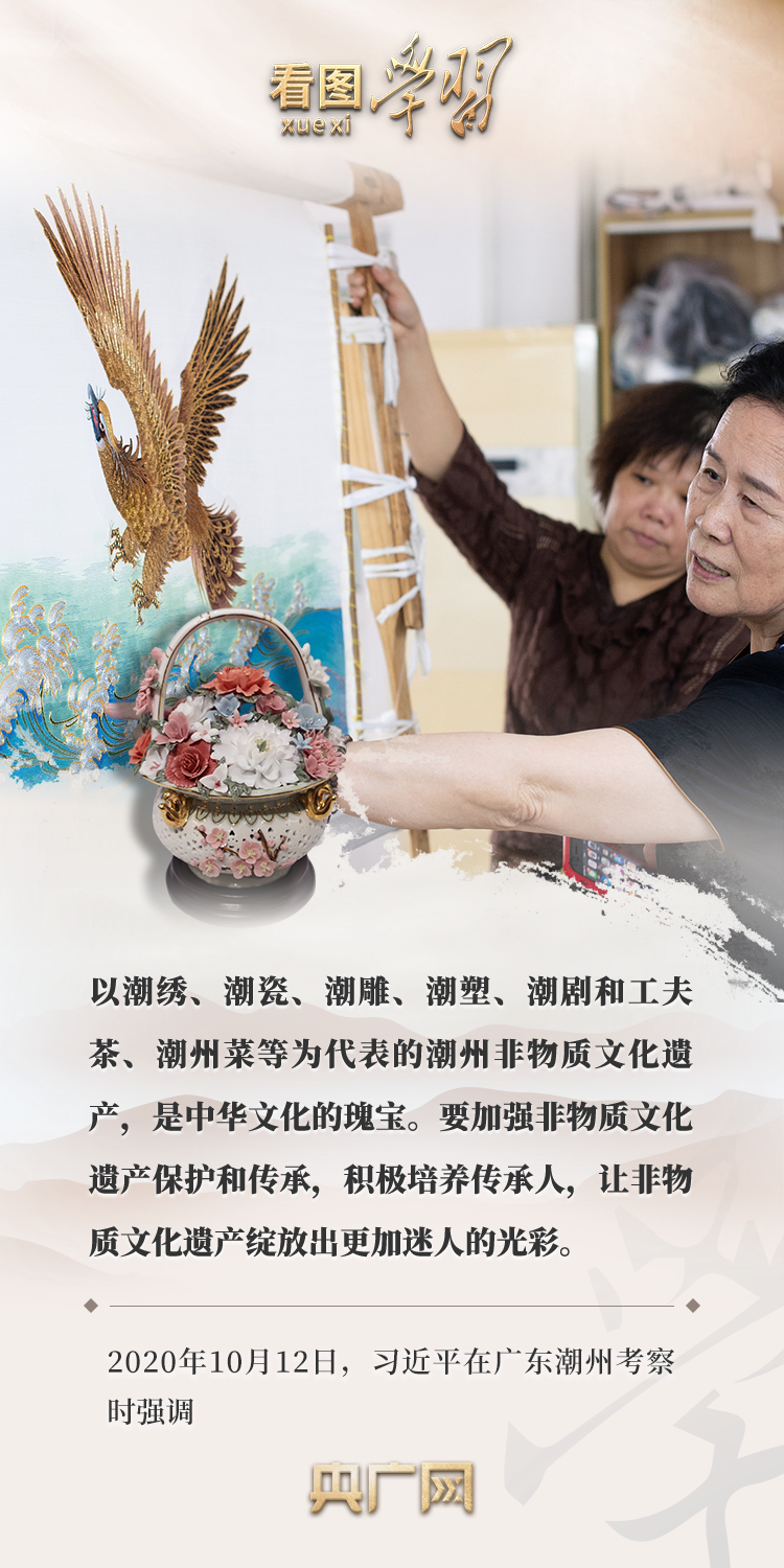 從古典民族史詩《格薩(斯)爾》到潮繡、潮瓷、潮劇和工夫茶,再到漢中藤編、常德絲弦……在各地考察調研時,習近平總書記曾多次就文化傳承發展、非物質文化遺產保護作出重要指示,強調要“讓非物質文化遺產綻放出更加迷人的光彩”。