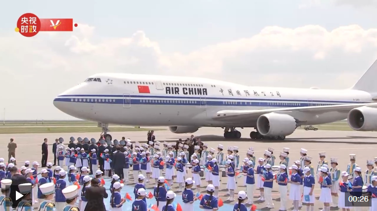 當地時間6月16日中午,國家主席習近平乘專機抵達阿斯塔納,應哈薩克斯坦共和國總統托卡耶夫邀請,出席第二屆中國—中亞峰會。