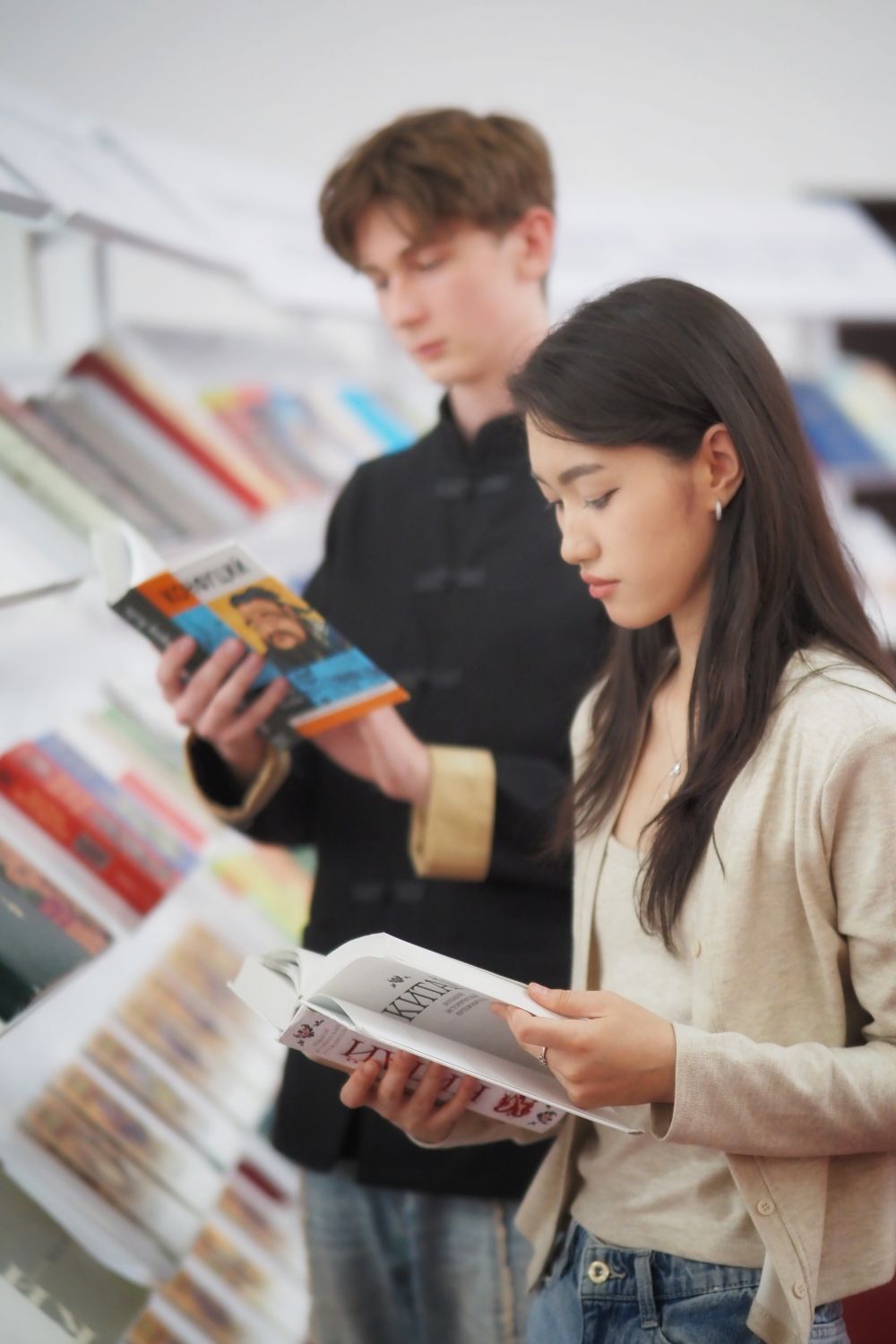 2025年5月31日,在哈薩克斯坦法拉比國立大學,學生在“中國絲路文學周”活動現場閱讀圖書。2025哈薩克斯坦“中國絲路文學周”開幕式暨“絲路新韻:文學讓生活更美好”主題作家座談會在哈薩克斯坦法拉比國立大學成功舉辦。后續,還將有多場文學交流活動在哈薩克斯坦主要城市舉辦。