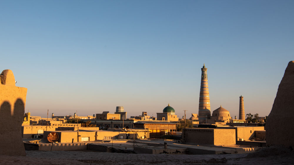 這是2023年9月21日拍攝的烏茲別克斯坦花拉子模州的希瓦古城。希瓦古城是古絲綢之路上重要的東西交匯之地,是烏茲別克斯坦第一處世界文化遺產。中烏合作開展希瓦古城保護修復工作,對古城內的阿米爾·圖拉經學院和哈?!つ吕聨焓矂e吉清真寺及周圍環境展開重點修復,讓希瓦這座古城更加絢爛奪目。