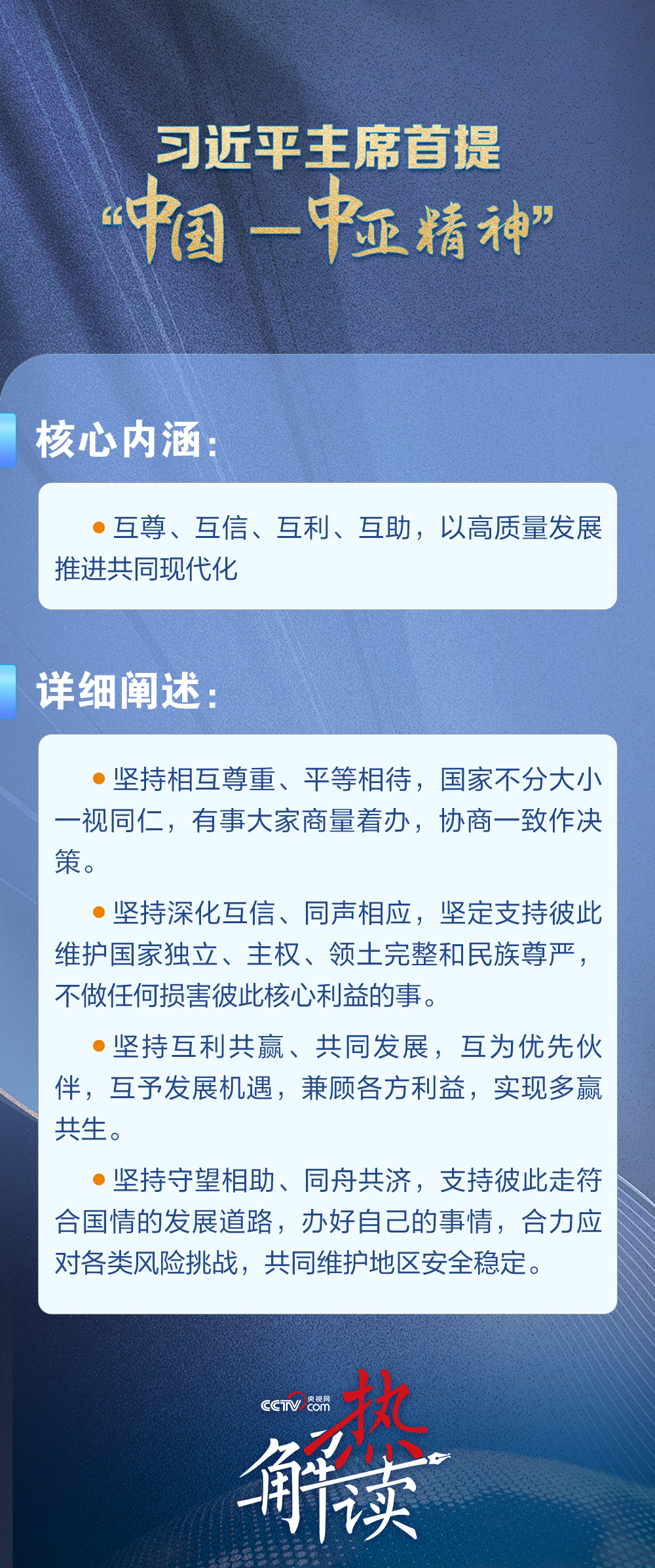 當地時間6月17日,習近平主席在哈薩克斯坦首都阿斯塔納出席第二屆中國—中亞峰會并作主旨發言,首次提出“中國—中亞精神”。