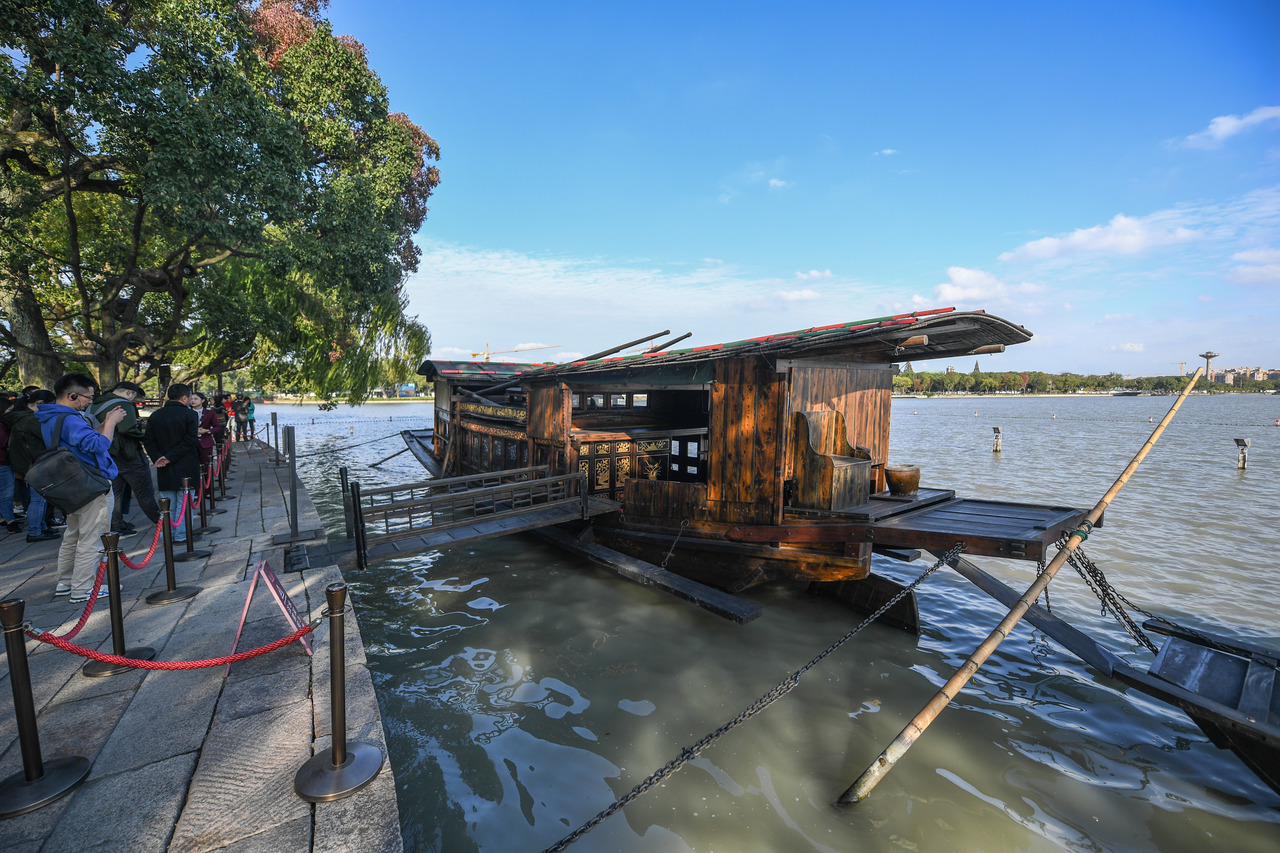 湖心島畔,紅船靜臥,船頭朝著太陽升起的方向,生動(dòng)還原了中國共產(chǎn)黨誕生時(shí)的場景。“習(xí)近平同志進(jìn)了船艙,他有感而發(fā),說南湖是他向往已久的地方,這次來浙江工作,第一次就來南湖參觀,是非常有意義的事。”時(shí)任南湖革命紀(jì)念館講解員黃曉琦回憶。