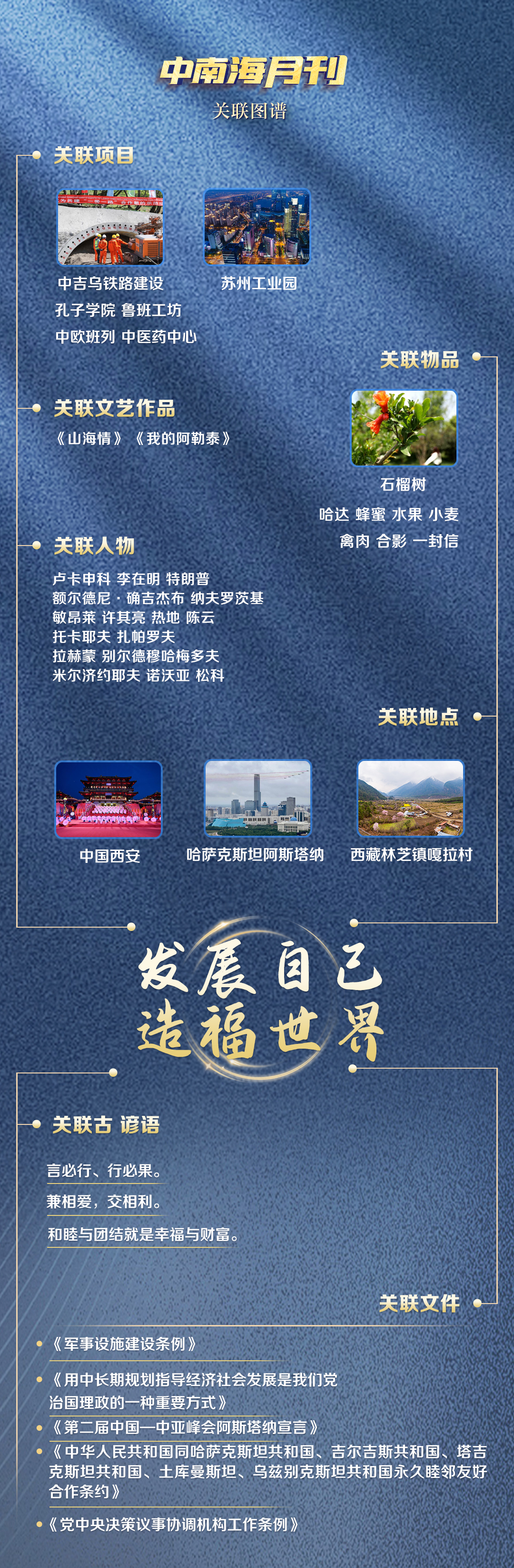2024年,中國同中亞國家貿易額達6741.5億元,較2013年翻了一番;中國在中亞國家已建成4個魯班工坊、5個中醫藥海外中心,雙方友城數量突破100對。截至2024年底,中亞天然氣管道已累計向國內輸送天然氣超5000億立方米。正在建設中的中吉烏鐵路將使吉爾吉斯斯坦第一次擁有通往海洋的道路;途經中亞的中歐班列架起一座座互利共贏的橋梁;從孔子學院、魯班工坊中,走出一大批從事跨文化交流、掌握新興工程技術、致力于各自國家發展振興的友好使者。