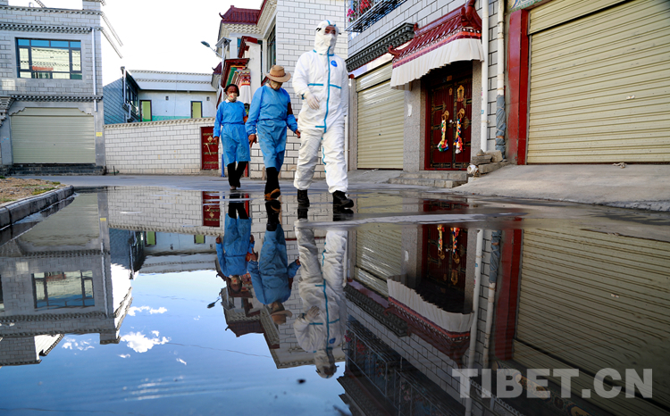 圖為孫彪和戰友拎著消殺完成的物資向索朗卓瑪家走去 攝影:鄭宏強