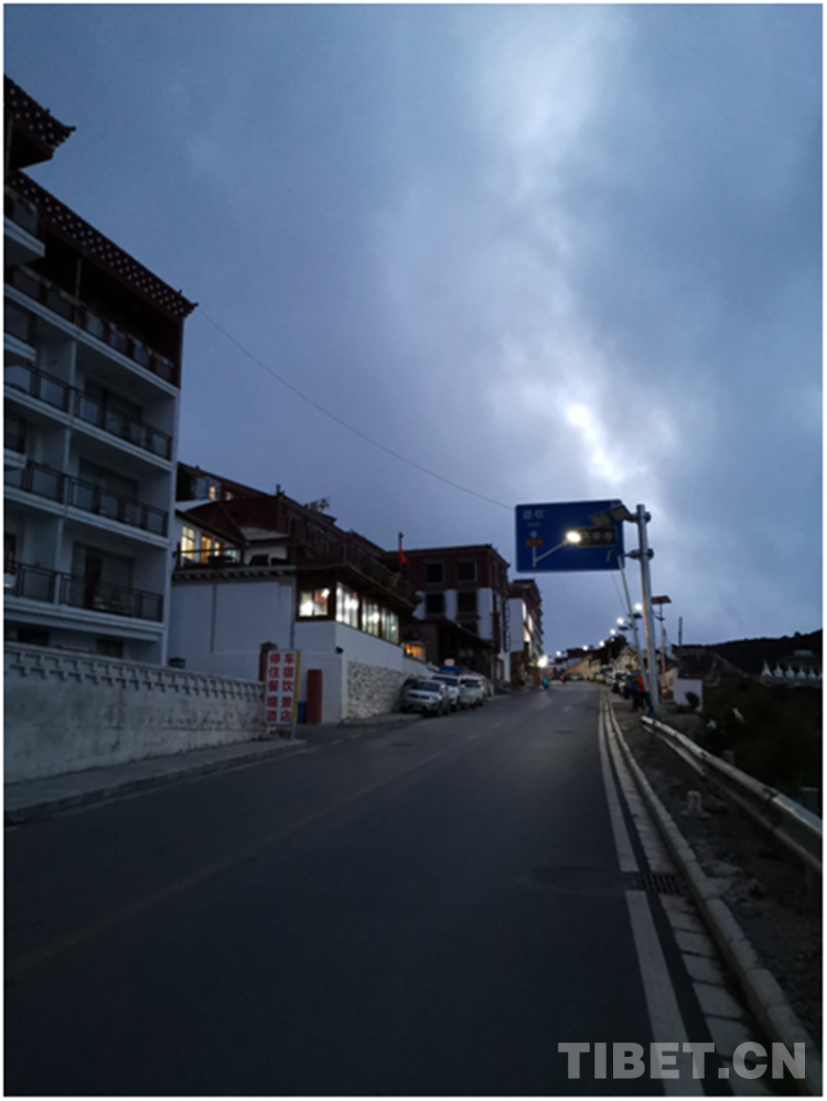 不一會兒,天空變成灰藍色,天邊浮出若隱若現的云朵,街邊的早餐鋪漸漸亮起了燈。坐落于德欽縣的飛來寺附近響起了低沉的佛樂和誦經聲。天色漸漸亮了起來,但霧氣并未散去。
