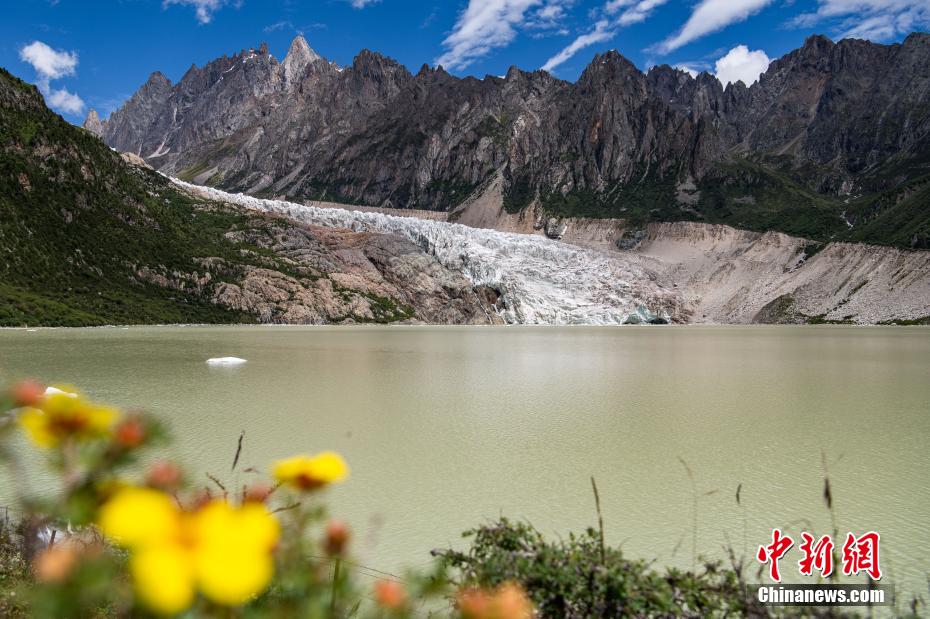 約雄冰川位于西藏自治區那曲市巴青縣境內,從空中俯瞰,巨大的冰川宛若一條巨龍,從6328米高的布加雪山峰頂傾瀉奔下,形成懸冰川體,蔚為壯觀。圖為約雄冰川融水形成的約雄措。 何蓬磊 攝
