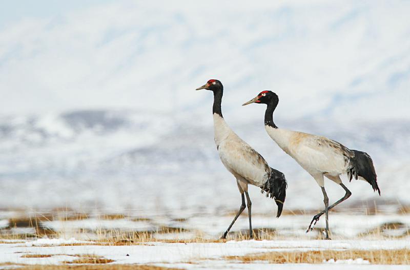 據觀鳥人員介紹,雌雄黑頸鶴一旦結合,就會終身廝守,朝夕相伴。如果一位伴侶死亡,那么另一半要么憂郁而亡,要么終身形單影只,絕不會再和其它黑頸鶴交配。[詳細]