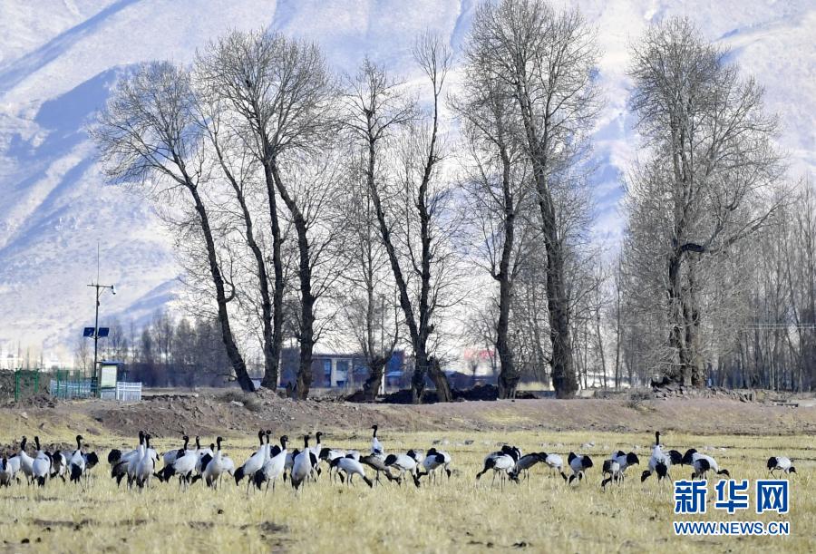 這是12月12日在林周縣黑頸鶴自然保護區卡孜鄉拍攝的黑頸鶴。新華社記者 黃豁 攝