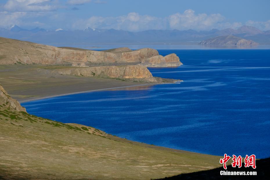 納木錯湖面一片蔚藍。 江飛波 攝