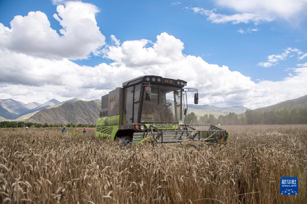 拉薩市達孜區克日村的農民用農業機械收割青稞(9月6日攝)。新華社記者 孫瑞博 攝