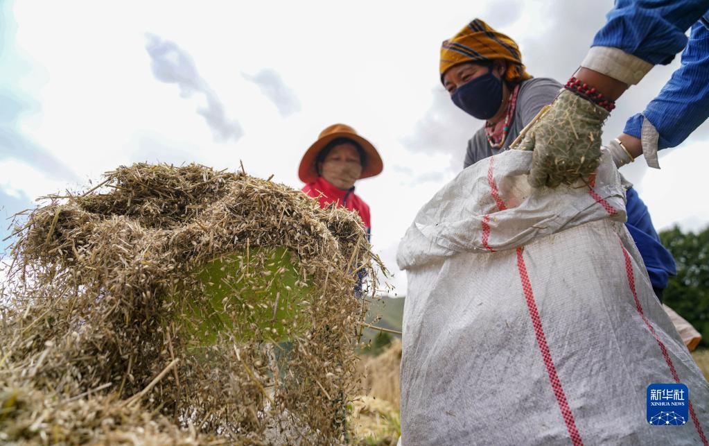 當前正值青稞收獲季節,拉薩河谷一帶農民抓緊收割,農田里一片豐收的繁忙景象。