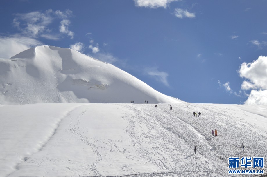 圖為游客攀爬廓瓊崗日冰川(9月14日攝)。新華網 貢桑央吉 攝(實習生)
