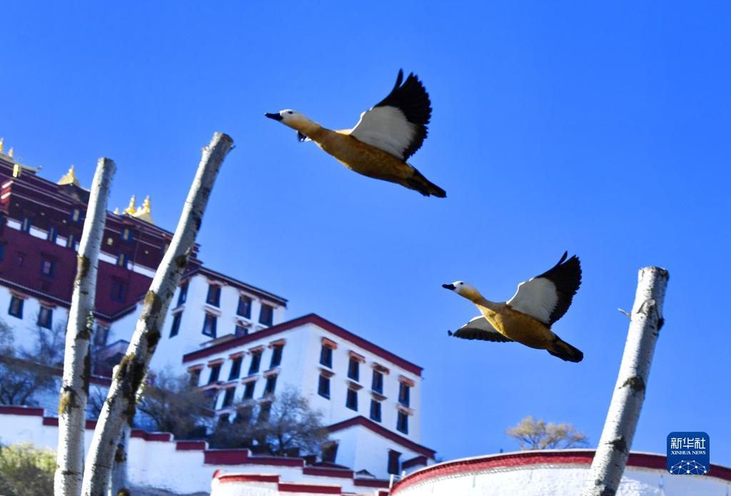 初冬時(shí)節(jié),被譽(yù)為“日光城”的拉薩晴空萬里。布達(dá)拉宮腳下的龍王潭公園里,候鳥翔集,生機(jī)無限。