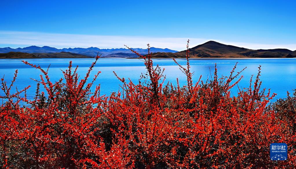 站在直拉山口俯瞰羊卓雍措,深邃藍的湖水似鑲嵌山間的藍寶石,與遠處的庫拉崗日雪山形成一幅壯美圖卷。圖為羊卓雍措。 李林 攝
