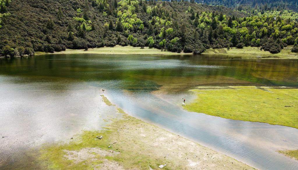 這是位于林芝市巴宜區魯朗鎮的一片濕地(5月31日攝,無人機照片) 。新華社記者 姜帆 攝
