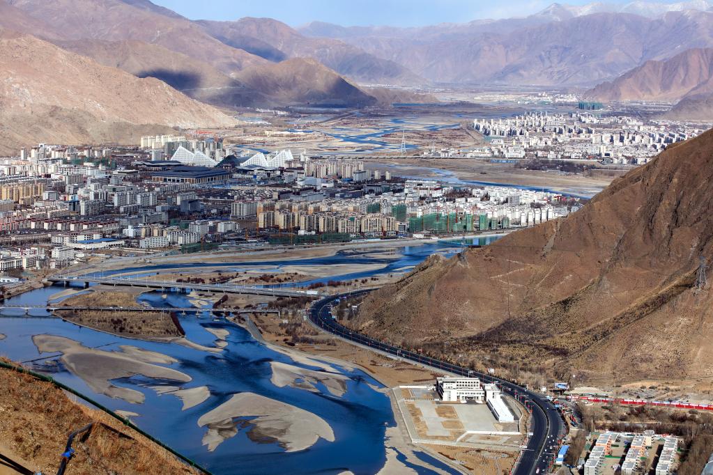 拉薩河從城區蜿蜒而過(3月2日攝)。新華社記者 姜帆 攝