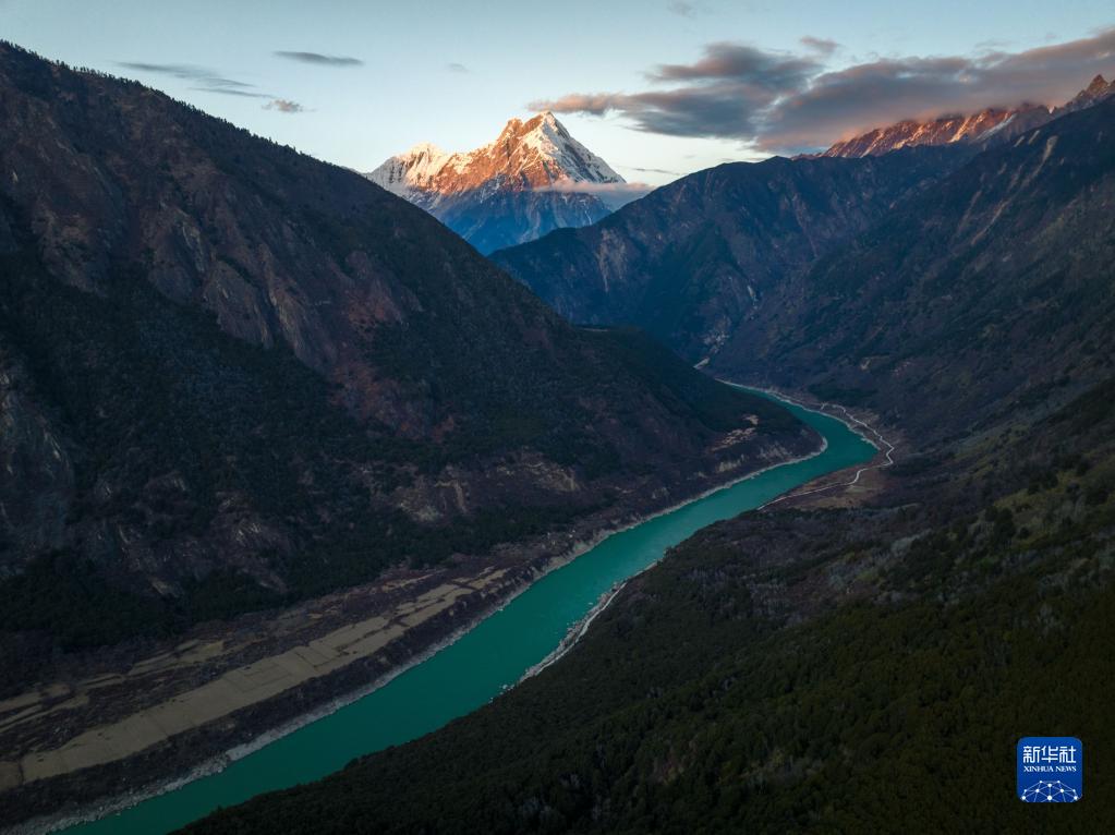 這是夕陽(yáng)下的羊卓雍錯(cuò)(12月11日攝,無(wú)人機(jī)照片)。新華社記者 姜帆 攝