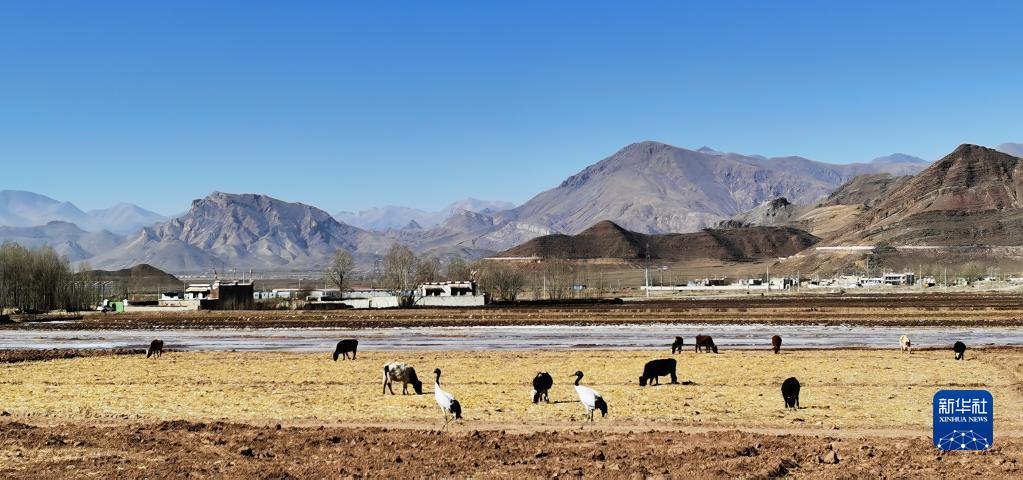 拉薩市林周縣松盤鄉冬日田野,動物和諧相處(12月24日攝,手機照片)。新華社記者 沈虹冰 攝