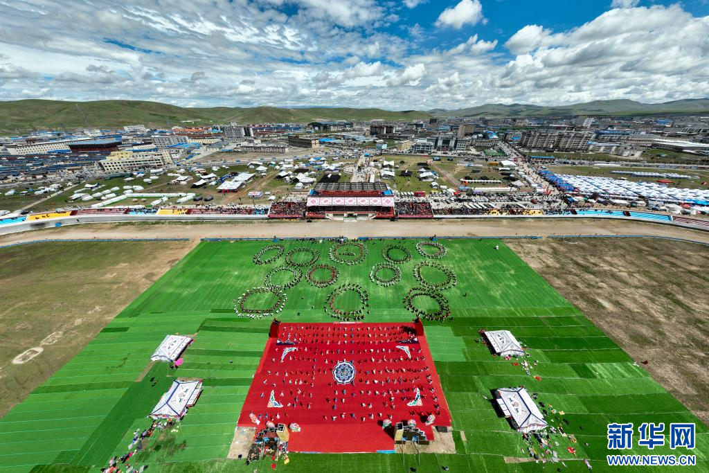 8月10日,演員在開幕式上表演舞蹈(無人機照片)。新華網 旦增努布 攝