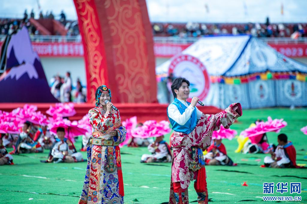 ??近日,2023年恰青賽馬節開幕式在西藏自治區那曲市格薩爾王賽馬場舉行,來自那曲市各縣(區)的演員和歌手共同載歌載舞。