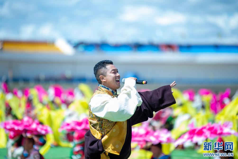 8月10日,歌手羅桑在開幕式上唱歌。新華網 旦增努布 攝