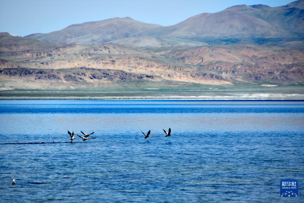 飛鳥從達(dá)瓦錯湖面掠過(8月28日攝)。新華社記者 劉文博 攝