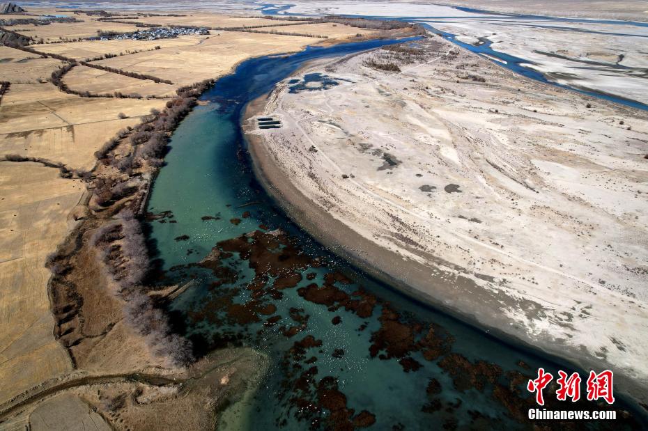圖為西藏日喀則市桑珠孜區邊雄鄉是黑頸鶴的主要越冬地之一。(無人機照片)李林 攝