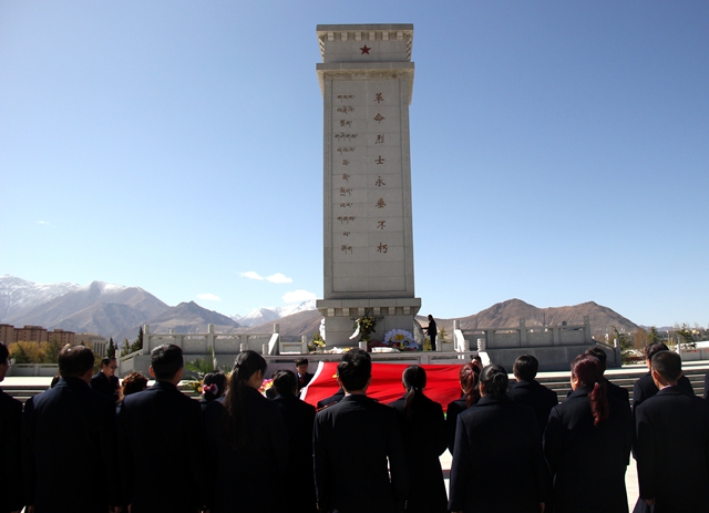 緬懷革命先烈,傳承革命精神。“我們不能忘記為爭取民族解放和人民幸福而獻身的烈士。他們拋頭顱、灑熱血換來了我們今天的幸福生活,他們是人民心中永恒的豐碑。”在現場的拉薩市公安局張警官說。