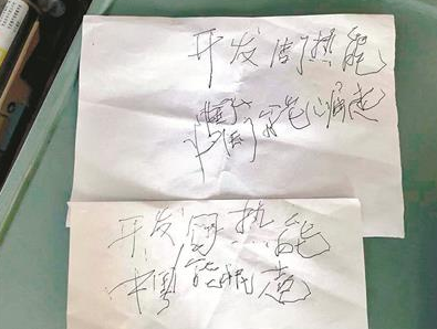 圖為李德威教授彌留之際寫的10個字:開發固熱能,中國能崛起。圖片來源:楚天都市報